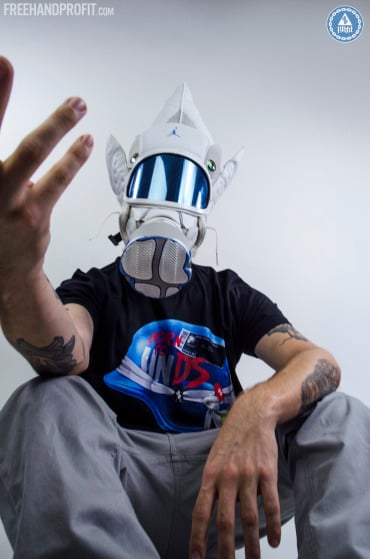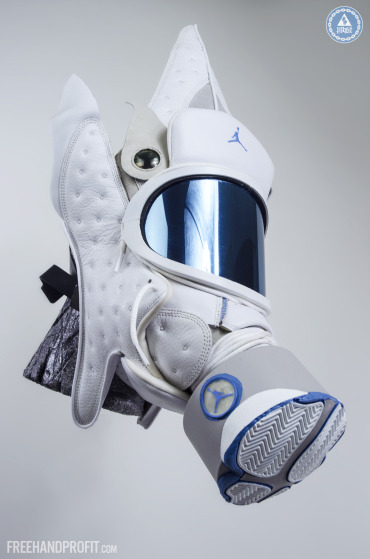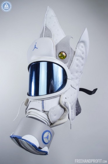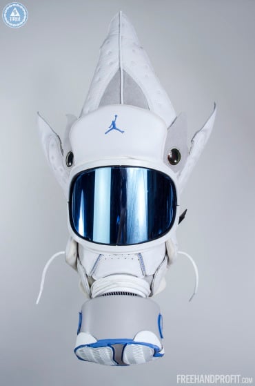 There’s no way to deny the creativity and uniqueness of Freehand Profit’s gas masks, and he’s gaining popularity by the day. Get a full 360-view of this AJ13 ‘Neutral Grey’ mask that was made for Reggie Williams of the Houston Rockets, by scrolling down the page, and if you want to find out how to get your own mask created, visit the Freehand Profit site!