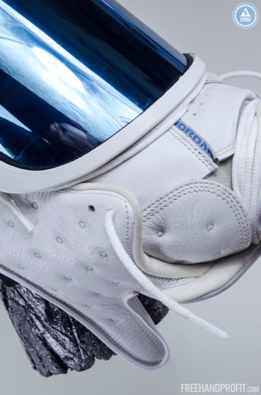 If you don’t know Freehand Profit, then you’re seriously missing out some extremely creative sneaker projects. We’ve got some visuals of the latest mask from the sneaker transformer himself, and he’s dedicating slot #62 to the Air Jordan 13 ‘Neutral Grey.’