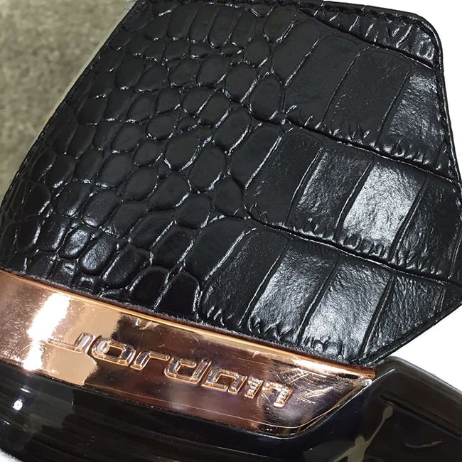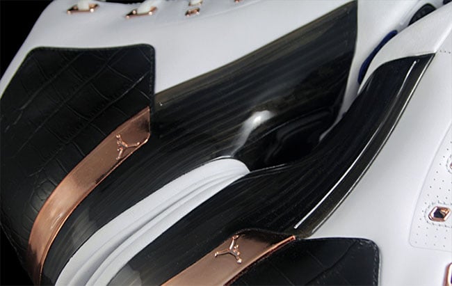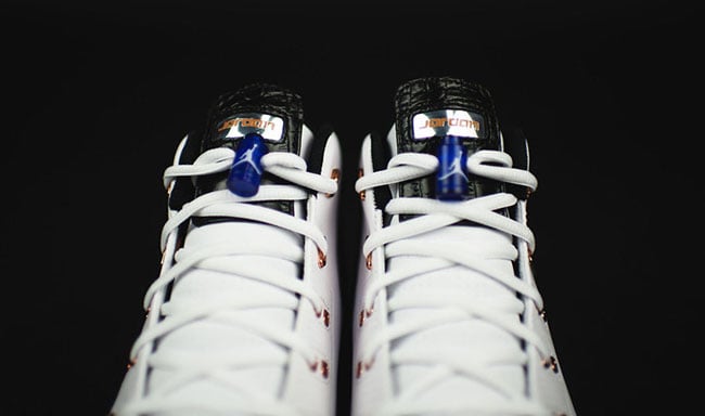 They are expected to come just like the originals while being dressed in a white, metallic copper coin, black and sport blue color scheme. The uppers take on white leather while the heel features crocodile print. Other details include copper hints across the heel and eyelets with sport blue used on the lace lock.