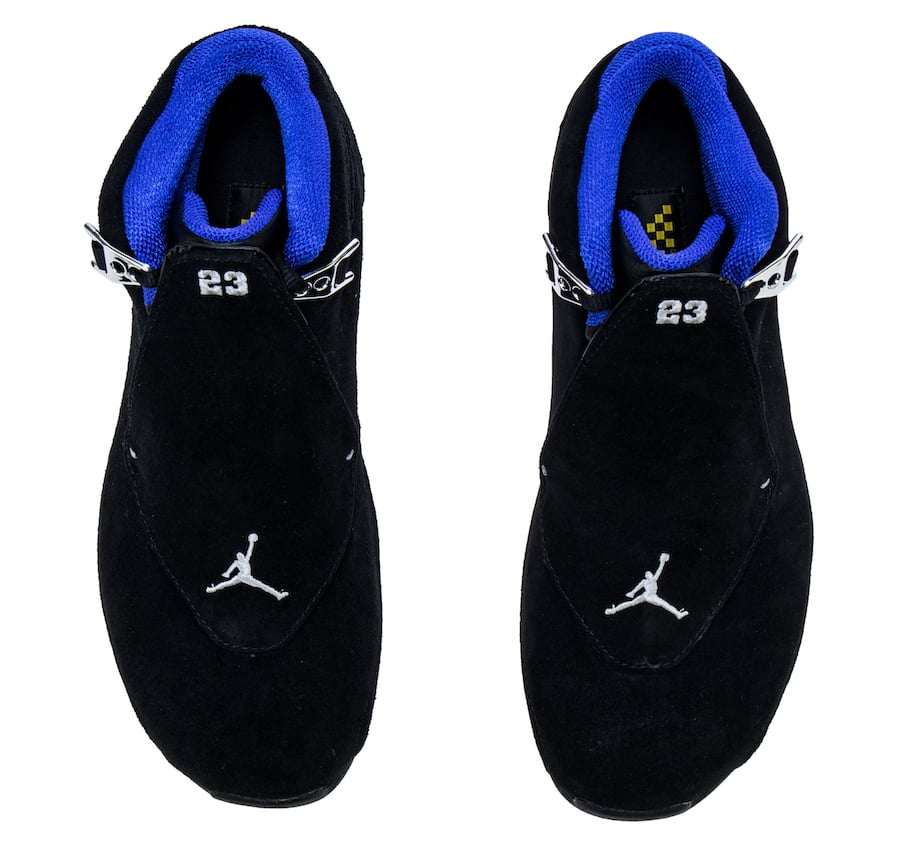 Note: Images used is the 2003 Air Jordan 18 Black – Sport Royal release and not the 2018 Retro.