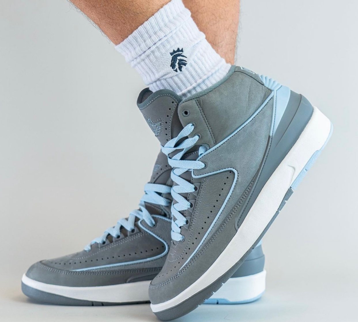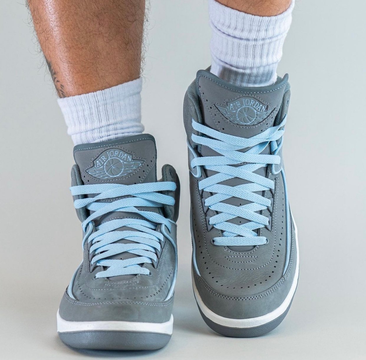 This Air Jordan 2 features a Cool Grey, Ice Blue, and White color combination. Utilizing Cool Grey throughout most of the upper while constructed with nubuck and suede. Highlighting the pair is Ice Blue on the laces, pipping, and on the heel. Other details include White on the midsole with Grey and Blue on the rubber outsole to finish the look.