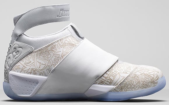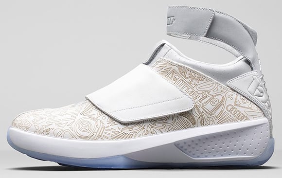 The Laser Air Jordan 20 comes in as of late your traditional white and metallic silver colorway. As you know the AJ1 has released with the same treatment and releasing soon is the Jordan 4 and Dub Zero. The laser print celebrates Jordan Brand through the years which was also revived from a 10 year rest.
