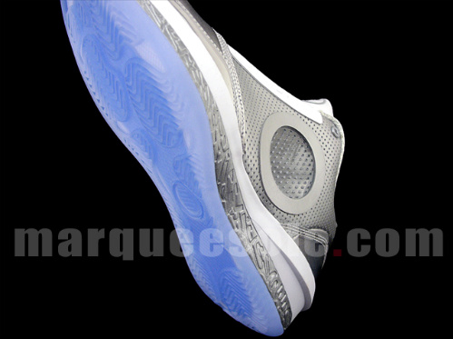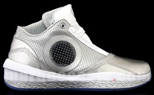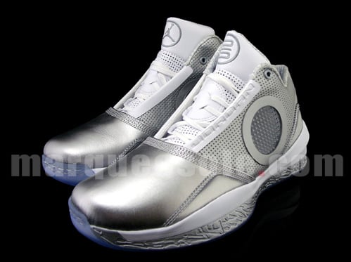 First seen on the feet ofย Jordan Brand player Dwyane Wadeย at the 2010 NBA All Star game, the Air Jordan 2010ย ‘Silver Anniversary’ createdย quite a buzz. The shoe features an all Metallic Silver upper with White accents, and a icey blueย out sole. The Air Jordan 2010 ‘Silver Anniversary’ will be hitting retailers this holiday season but for those who cant wait till then, Marquee sole has few pairs in their inventory. Continue after the jump to see more detailed pics of the Air Jordan 2010 ‘Silver Anniversary’.