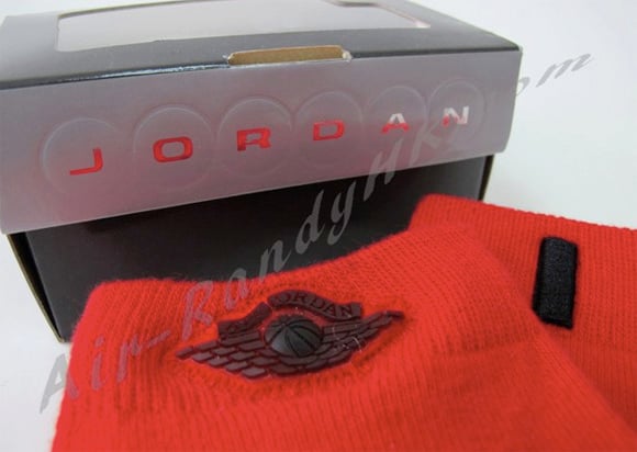 Jordan Brand will release a bunch of socks for 2011, we already showed you a few pairs, and now a pair will release featuring the Wings logo. So far, three colors are available: red/black, red/green and red/yellow. A small Air Jordan box comes with each pair of socks. You can grab all three socks for $26.99 via Air-Randy.