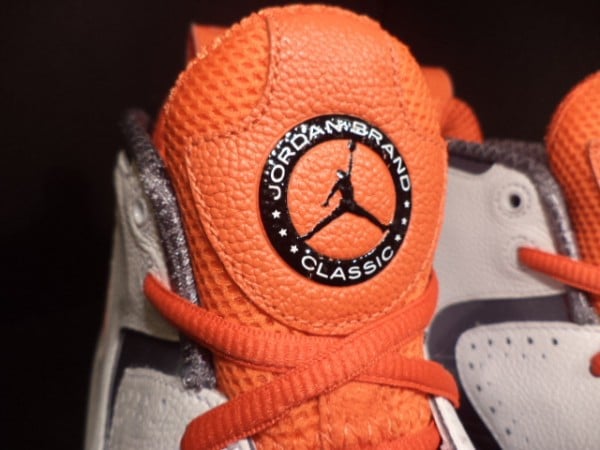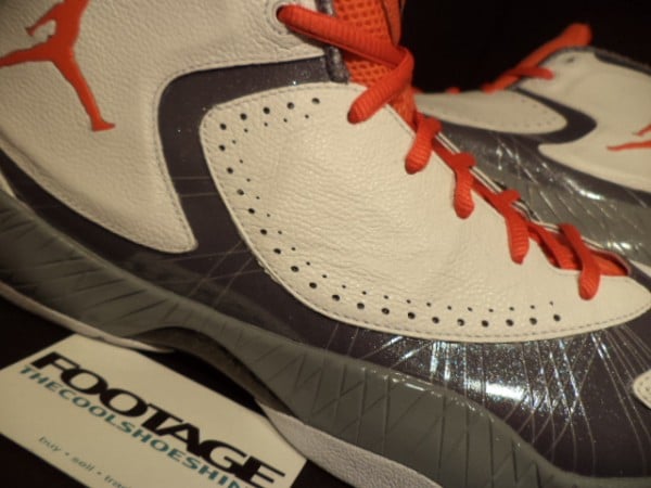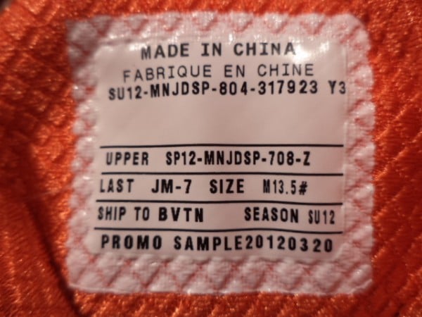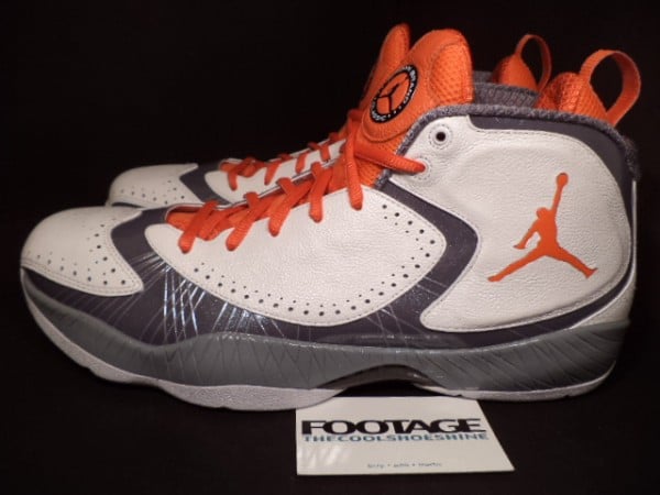 This Air Jordan 2012 “Jordan Brand Classic” is a PE promo sample version that sports a white, safety orange, metallic silver, and flint grey colorway. Known primarily for its redesigned seamless upper, this high-performance basketball sneaker features an all-over Flywire system, comes with three alternating insoles, and includes two inner-lining options. What’s also interesting to note about this sample is the “Jordan Brand Classic” branding on the sneakers’ leather accented tongue.