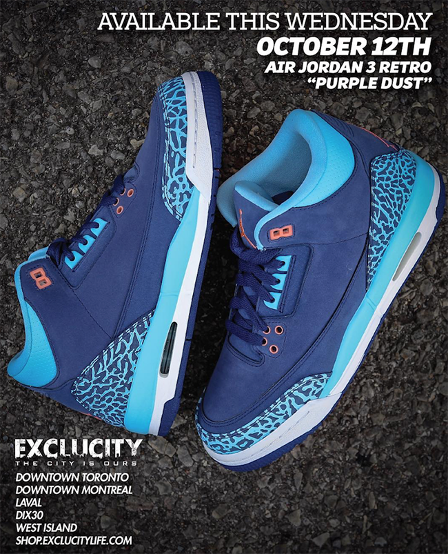 Update: The Air Jordan 3 Dark Purple Dust and Blue Cap for Kids is releasing this Saturday, October 29th at shops like Shiekh Shoes.