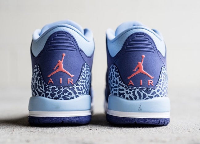 This Air Jordan 3 combines a mixture of colors like Dark Purple Dust, Atomic Pink and Blue Cap. Dark Purple Dust runs across the nubuck upper while Blue Cap lands on the midsole, around the collar, liner, eyelets and within the elephant print. Atomic Pink is then spotted on the top eyelet and bottom four while landing on the Jumpman branding. Finishing the look is a White midsole and Purple outsole.
