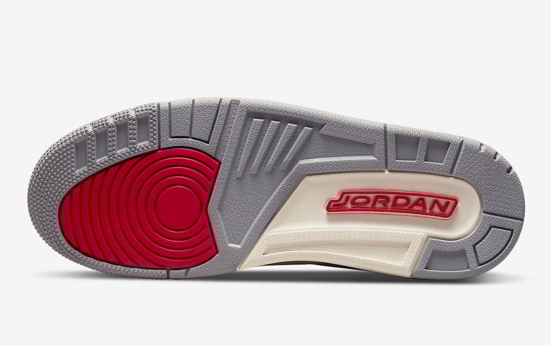 This Air Jordan 3 comes dressed in a Muslin, University Red, Cement Grey, and Sail color combination. The image used is a mock-up. However, itโs an accurate representation of whatโs releasing.