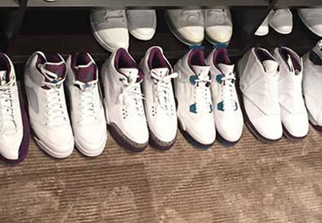 For 2017, the Charlotte All Star Air Jordan 3 will come exactly like shown. The shoes will feature a White base while Purple wraps the heel and toe, outsole and liner. Teal accents will hit the eyelets while the traditional use of Elephant print is present.
