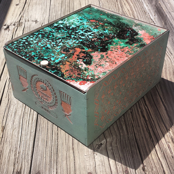 Gourmet went above and beyond with the sneakers, but it doesn’t stop there. He also added a custom laser etched box with a slide out top. The logos will also feature copper paint while the wood is painted in vintage chalk green.