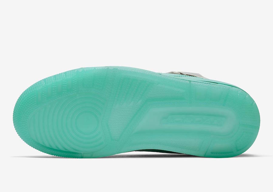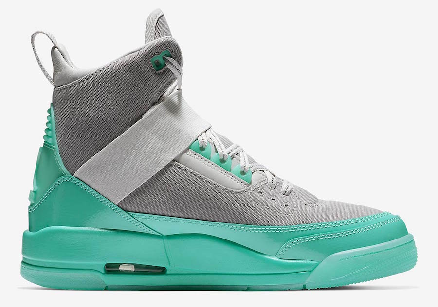 Dressed in a Vast Grey, Tropical Twist and Atmosphere Grey color combination. This variation of the Air Jordan 3 features Grey across the upper along with Teal accents across the patent leather mudguard, midsole, eyelets and translucent outsole. Other highlights includes an extended collar and a large buckle on the strap.