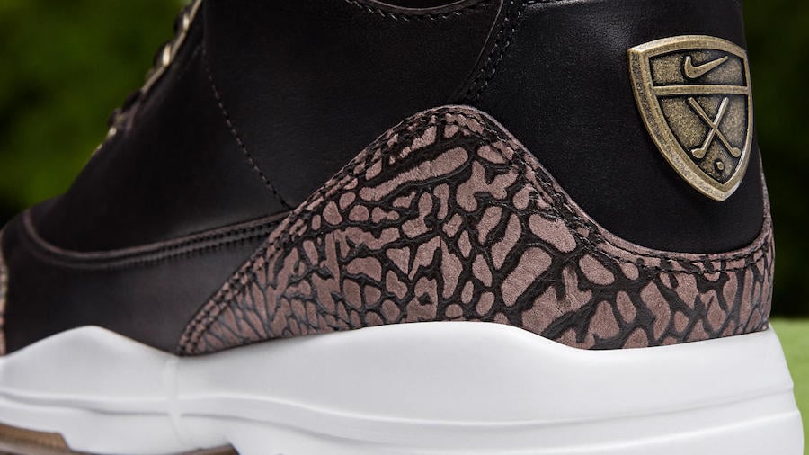 Keepingย original elements of the shoe first introduced in 1988, including the tumbled White leather, Grey elephant print and the Jumpman logo on the heel. The Bronze edition features metal finishes that complement the premiumย leather and brown elephant print on this golf-specific version of the Air Jordan 3.ย A full-length Lunarlon midsoleย offersย comfort and stability on the course.