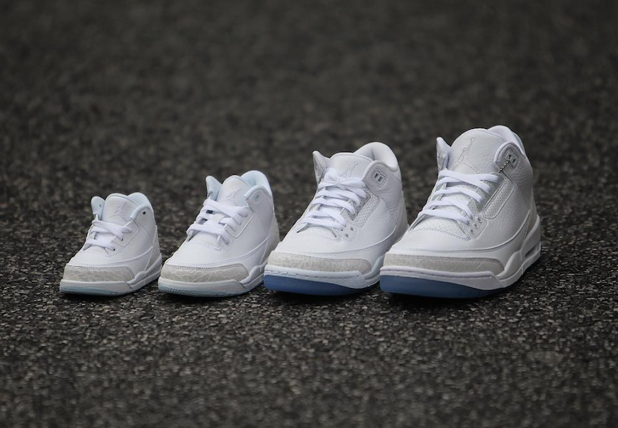 Update: New photos of the โPure White Jordan 3 which shows they will be available for the entire family. Images via GC911.