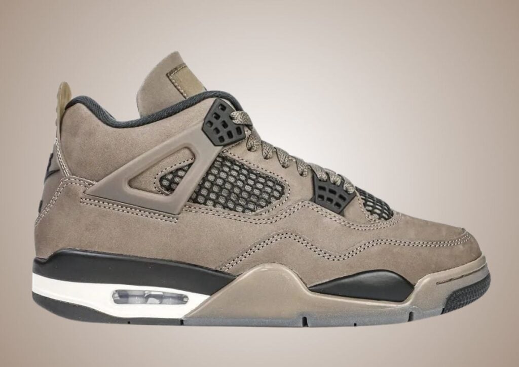 This Air Jordan 4 features a Cave Stone, Black, and Moon Particle color scheme. Utilizing shades of Brown across the upper with Black on the eyestays, tongue labels, and mesh. You can expect the Jumpman logo on the tongues and Black Nike Air branding on the heels. Completing the design is a Black on part of the midsole and a translucent rubber outsole.