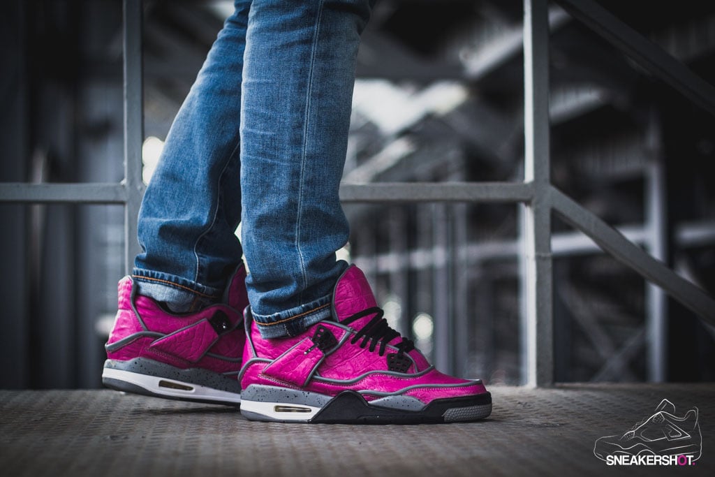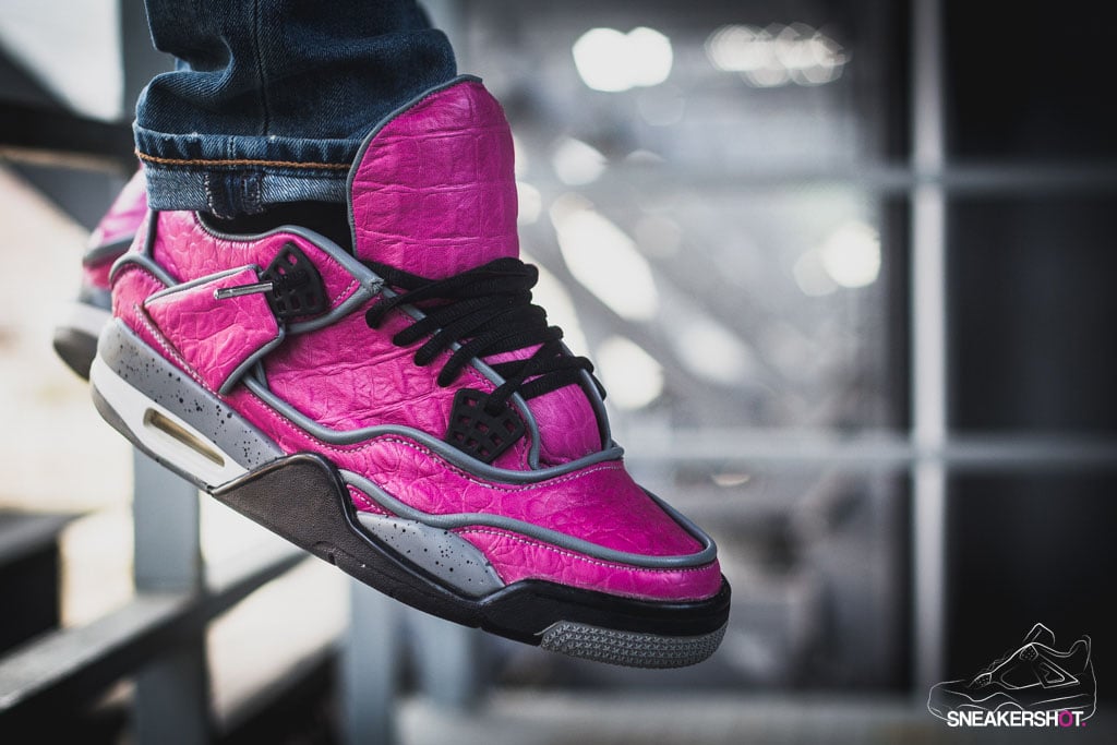 When Maggi isn’t take awesome photos of sneakers, he is adding his artistic skills to Jordan’s. Today we have images of his newest creation on the Air Jordan 4 known as Pink Dinosaur.