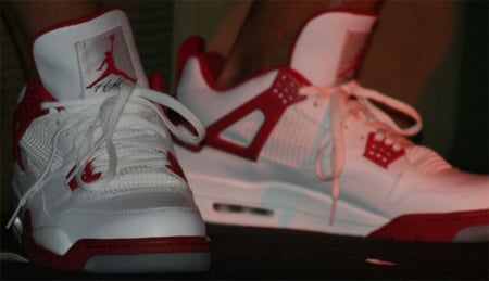 Fat Joe made an appearance at the “Battle of the Jordan Part 2” which was held July 14th in Miami FL, and was wearing a pair of Air Jordan 4 White/Red only made for Fat Joe. People are saying this particular color way is a Player Exclusive for a member on Team Jordan, but Fat Joe gets a lot of exclusives from Nike so why not Jordan Brand? Picture via nt.