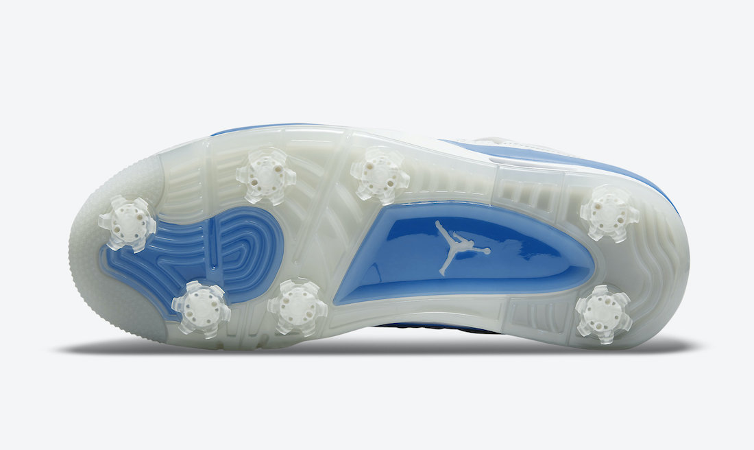 This golf iteration of the Air Jordan 4 comes dressed in a White, Neutral Grey, Black, and Military Blue color combination. Resembling the original classic, which is also expected to feature Nike Air branding on the heel. Finishing the look is spikes on the outsole to hit the links.