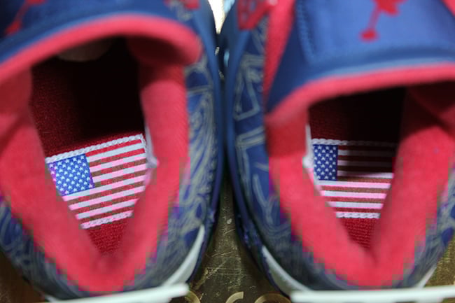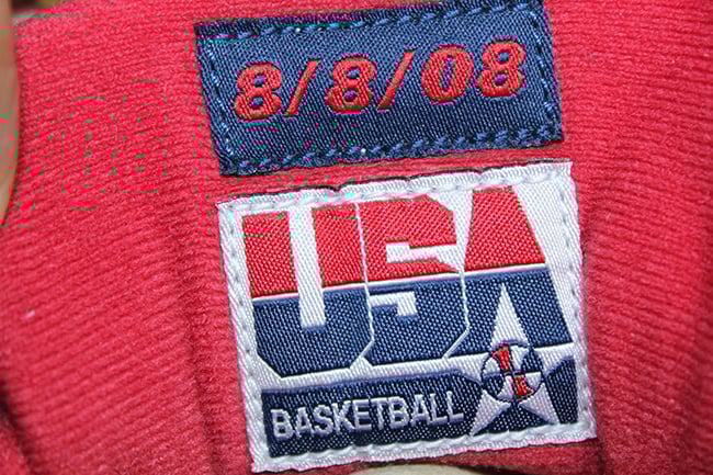 The brand has used a dark shade of Blue through the entire uppers which then is placed on the laces and tongue. In addition, laser print is used through the base. Keeping the USA theme going, Red lands on the eyelets, Jumpman, liner and outsole while White hits the heel tab, midsole and netting. Other details includes a USA Basketball tag, American Flags on the insoles and August 8th, 2008 which is the day when the Olympics started.