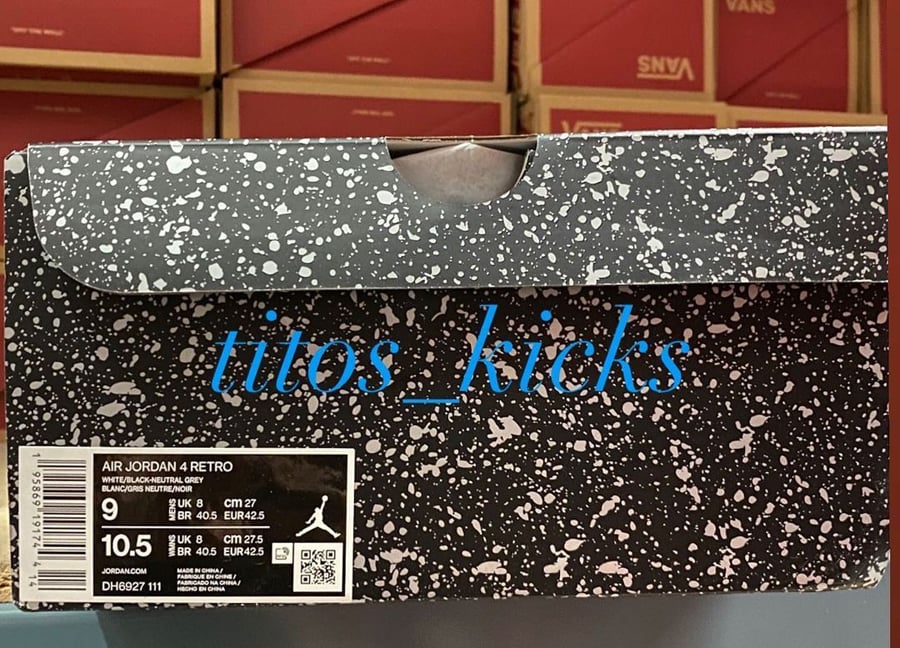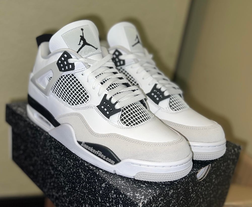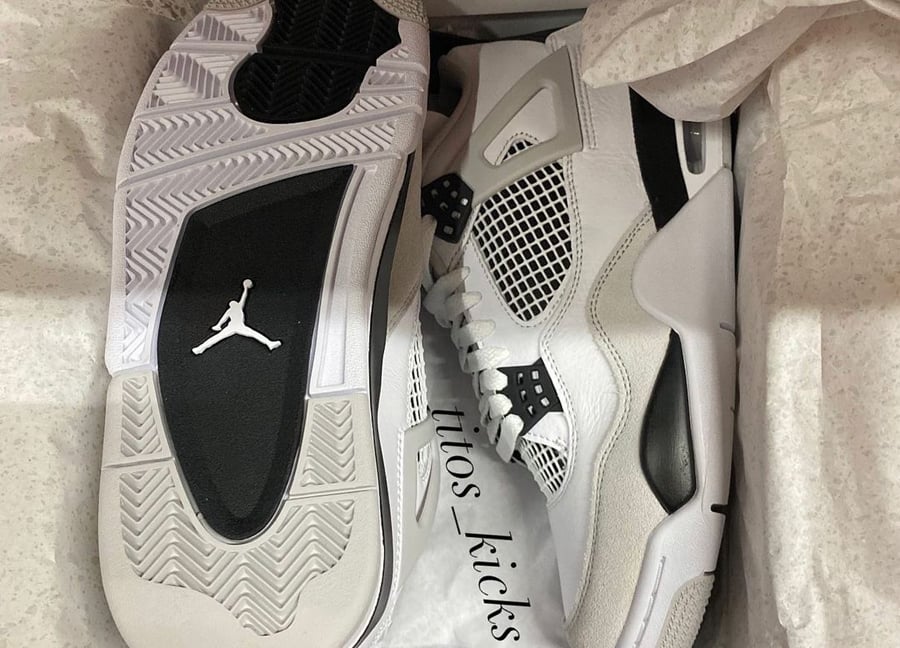This Air Jordan 4 features a clean and simple White, Black, and Neutral Grey color combination. Although the image used is a photoshop, it’s an accurate representation of whatโs releasing. Constructed with White leather throughout, Grey hits the toe, wing eyelets, and liner. The biggest change is Black which appears on the Jumpman branding, below the mesh, eyelets, and part of the midsole. Finally, all three aforementioned colors land on the outsole to finish the look.