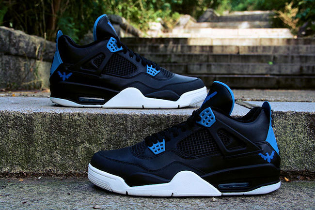 Nightwing (aka Dick Grayson) was the original Robin The Boy Wonder and eventually went off on his own and took on a new super hero identity once he got older. This custom Air Jordan 4 was created using the Air Jordan 4 โMilitary Blueโ with some changes of course. As you can see, they feature a Black base along with White on part of the midsole and outsole. In addition, Blue accents are shown throughout while Nightwingโs logo is seen by the heel and on the tongue.