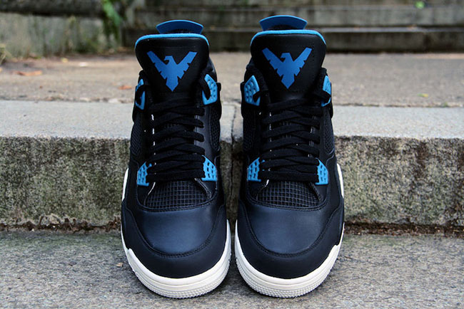 The Air Jordan 4 ‘Nightwing’ Custom was created by Ecentrik Artistry. For those that donโt know, Nightwing is a super hero from DC Comics.