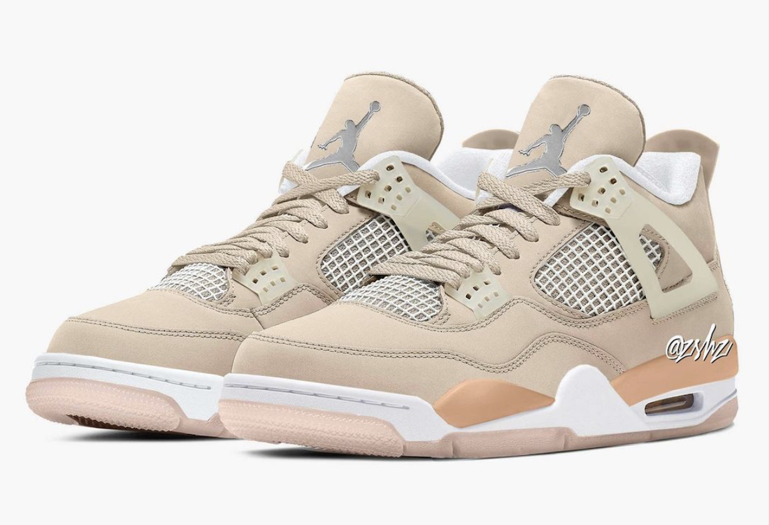 This Air Jordan 4 comes dressed in a Shimmer, Bronze Eclipse, Orange Quartz, and Metallic Silver color combination. First, they feature a Beige hue on the uppers while constructed with leather, nubuck, and possibly suede. Following, Metallic Silver appears on the Jumpman located on the tongue and the Jumpman on the heel. Lastly, we can expect Orange highlights while White hits part of the midsole and rubber outsole.