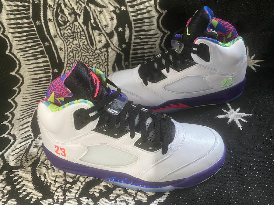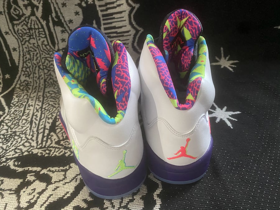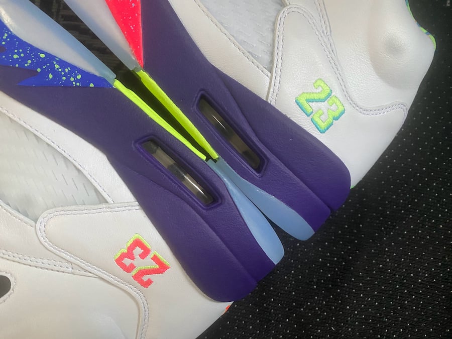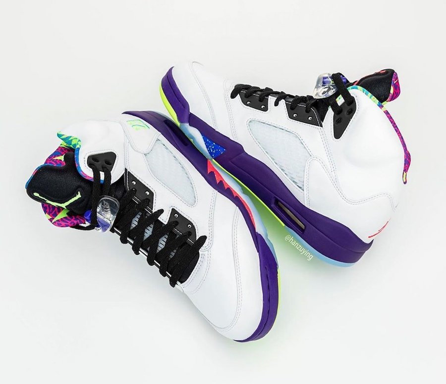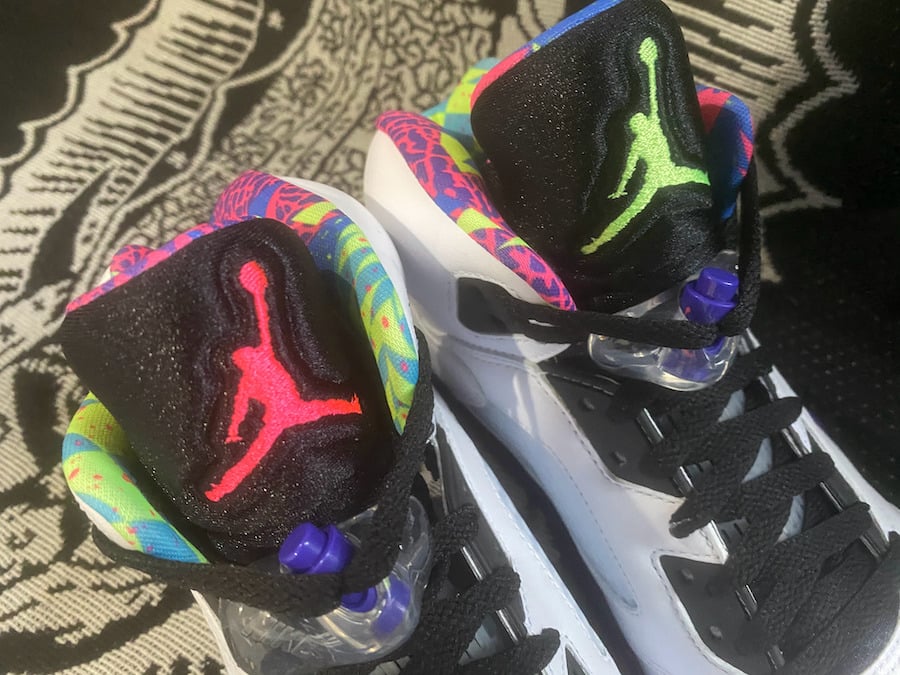 Although images have yet to leak, this Air Jordan 5 is expected to feature a similar theme of the first release, however the upper will be White. If the rumor holds true, we can also expect Purple to land on the midsole with speckled detailing and Pink. 23 will be placed by the heel along with Green accents. Each will have a mismatched/flipped theme while the Jumpman will be either Green or Pink and details on the midsole is done in Blue or Pink.