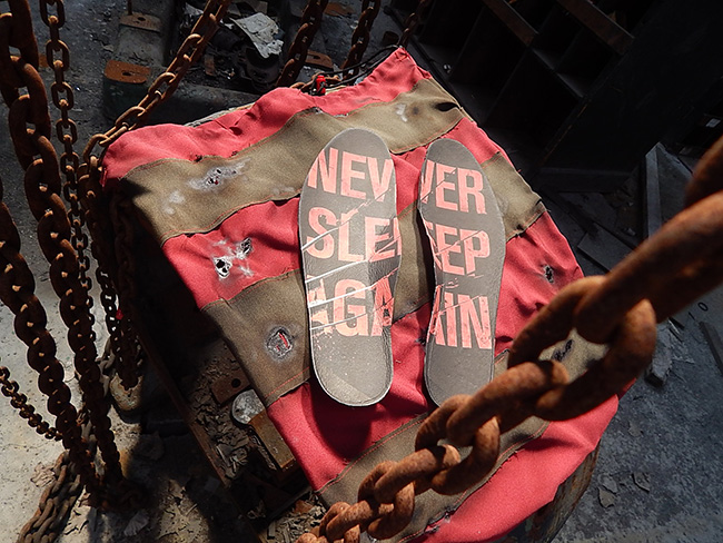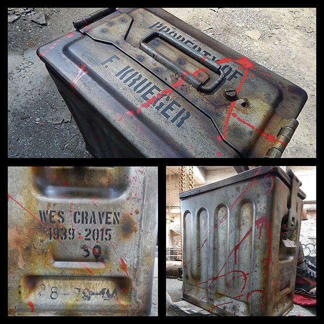 The Jordan 5 customs were a private order for one of the artists clients, so there won’t be a run of these available. As you can see, they are dressed in the same colors as Freddy’s shirt and the toe box resembles his burned skin while the insoles have written “Never Sleep Again” across. Going the extra mile, Sab even created a custom faux rusted box for the shoes and dust bag made from scratch.