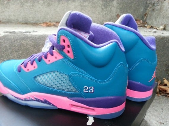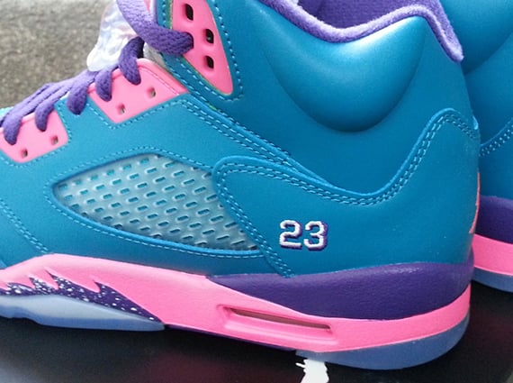 Having already shared a few looks at this rather vibrant pair of Tropical Teal/Club Pink/Purple Air Jordan V GS, it looks like even newer photos have surfaced. With the creative minds over at Jordan Brand continuously cooking up some color heavy retail offerings for the GS sneakerheads out there, this upcoming pair of AJVs fits right into to fold. Outfitted with a potent combination of tropical teal, club pink and purple, these joints will be arriving at retailers nationwide on November 23rd. Check out the new gallery of images after the jump and be sure to let us know if these will be an instant cop when the are released.