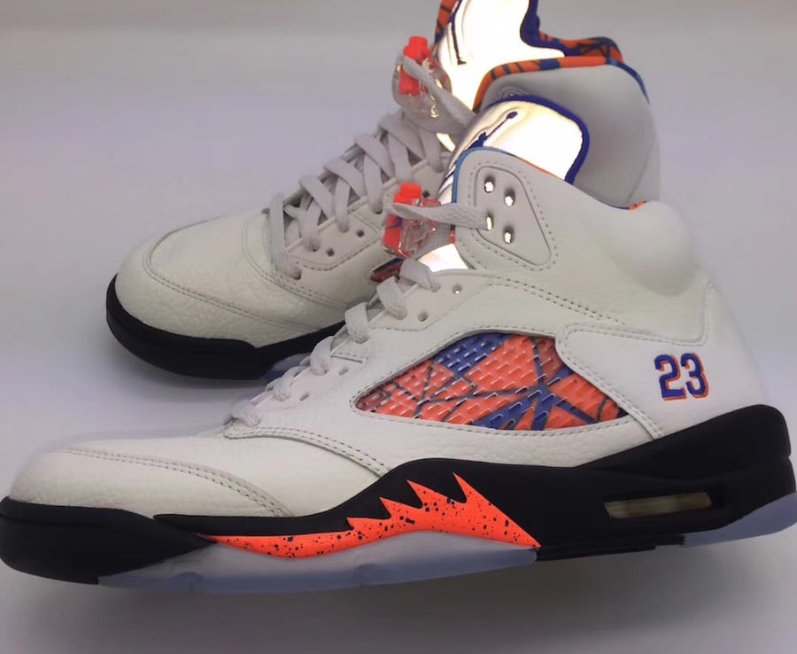 This Air Jordan 5 features a Sail, Orange Peel, Black and Hyper Royal color combination. Using a unique design under the netting while speckled detailing lands on the shark teeth on the midsole. In addition we have Sail covered across the upper while both Blue and Orange are accented throughout. Other highlights includes 23 stitched by the heel, translucent outsole and โAir Jordan Internationalโ written on the insoles.