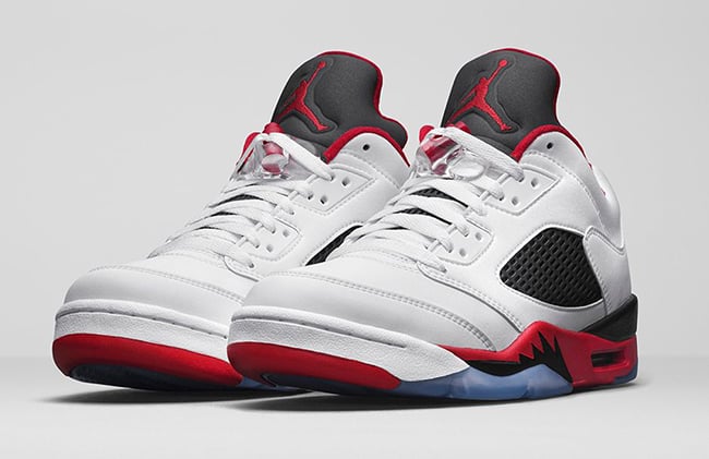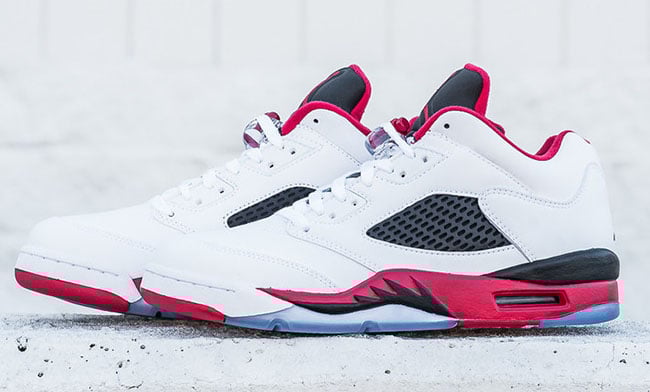 Update: Tomorrow, the Air Jordan 5 Low Fire Red will release at retailers across the globe. Leave a comment and let us know if you plan on picking them up.