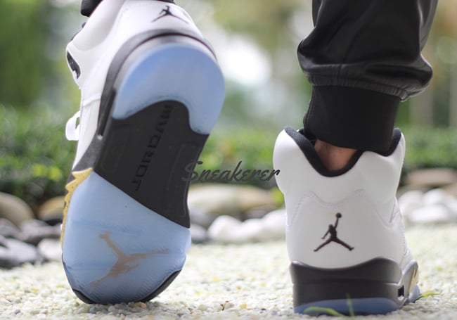 Update: Check out on feet images of the Air Jordan 5 Gold Medal via sneakerer.