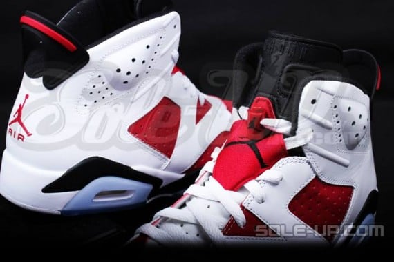 The “Carmine” Air Jordan VI retro is surely going to jump to the top of quite a few shopping lists once the folks over at Jordan Brand give them a release date. Having already shared quite a few look at this potentially upcoming retro with all of you sneakerheads already, it looks like some fresh new images have surfaced. As you will see from the new angles, the shoe looks just like it did when it last released as a part of the Countdown Pack with the only difference being the icy sole. Read on after the jump to check out the new gallery of photos and be sure to keep checking with SneakerFiles for more.