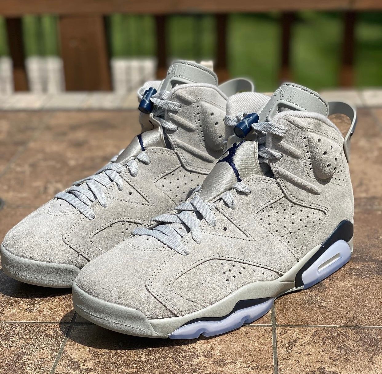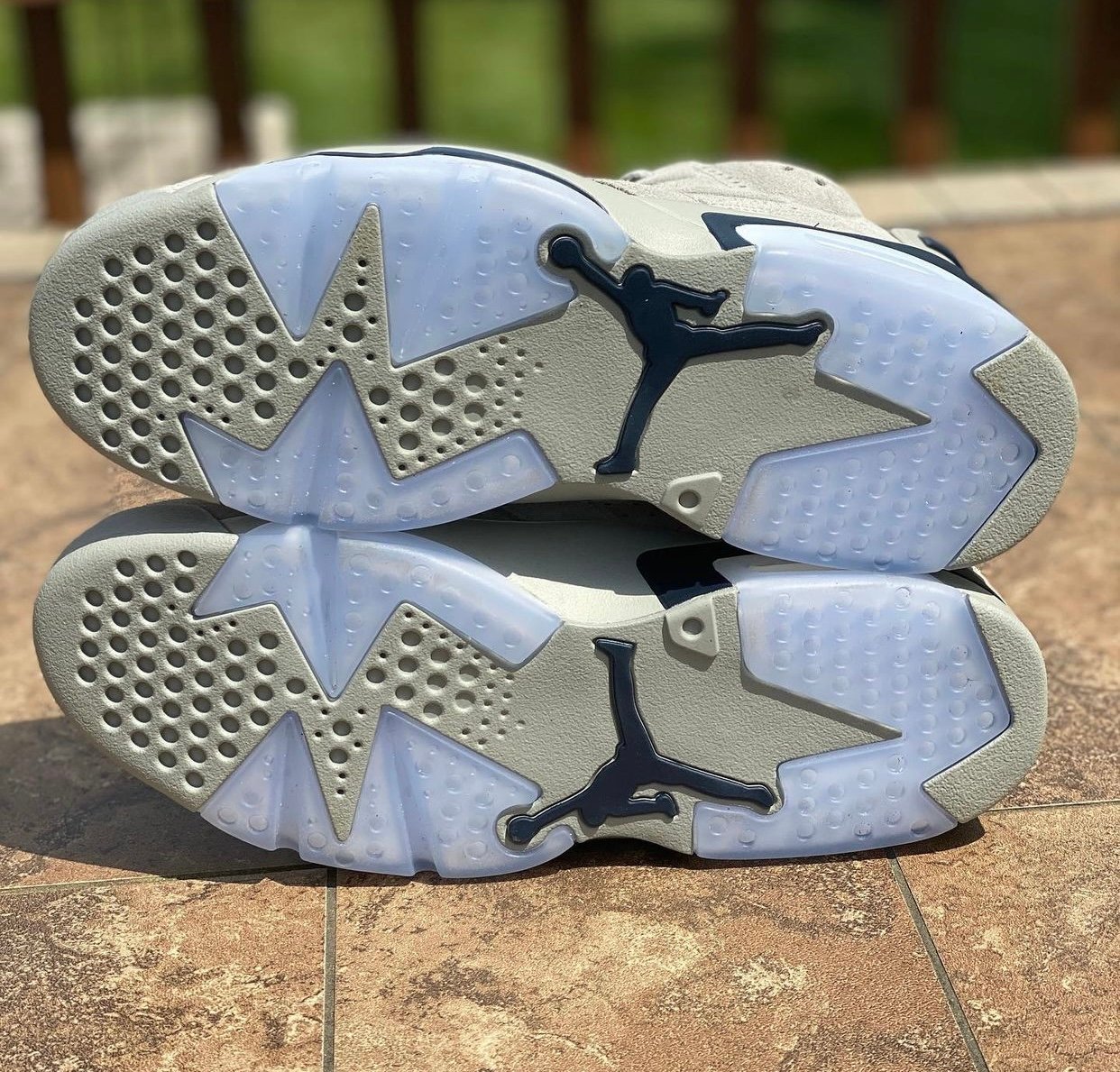 This Air Jordan 6 comes with a Grey suede across the uppers while the same shades land on the tongue, laces, heel, and midsole. Highlighting the pair, we have Navy on the midsole, lace lock, Jumpman branding, and heel clip. Completing the look is a translucent outsole.