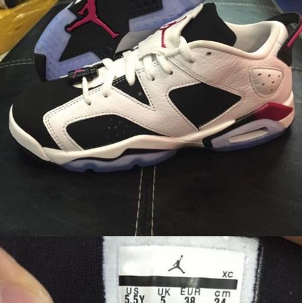 We now have more images of the upcoming Air Jordan 6 Low GS White / Black – Sport Fuchsia which was originally labeled as having Fireberry. It seems that has changed bit it’s still the same shoe.