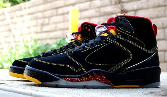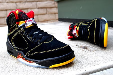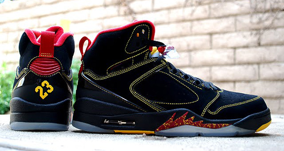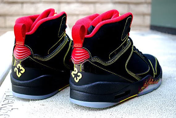 Jordan Brand has released another pair of jays dedicated to the Atlanta Hawks. Although the Air Jordan 60+ Atlanta Hawks doesn’t follow the same colorway as the Jordan I’s, it has its own style to bring to the table. The AJ Sixty Plus uses a full black suede upper with yellow contrast stitching to match the outsole, which features a fresh clear V panel. The black midsole rocks a speckled red V panel to match the red/yellow tongue. The heel panel which sports the “23” logo uses black patent leather to change things up. This shoe will be available in late October at a price tag of $150.
