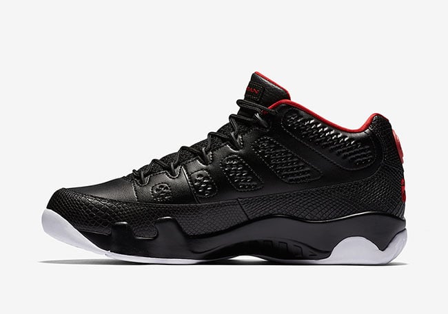 The ‘Bred’ Air Jordan 9 Low aka ‘Snakeskin’ will release at Jordan Brand retailers on April 16th, 2016. Retail price is set at $170. Below you can see additional images which are the officials from Nike.