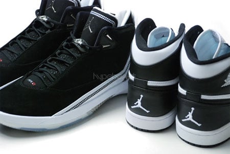 From one Air Jordan Countdown Pack to another, we get a look at the soon to be released pack which features the Air Jordan I (1) ย and Air Jordan XX2 (22). Both include a black/white composition which is rather simple. The mostย noticeable thing about this pack is theย disappearanceย ofย ย traditional Chicago Bulls red. However, this pack seems to be moreย nostalgicย as it offers the model that started it all and a model that was released before the XX3. Release is scheduled for September 25th, 2008 at select Air Jordan accounts. Via hb.