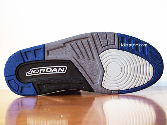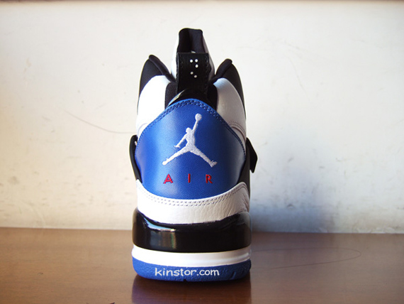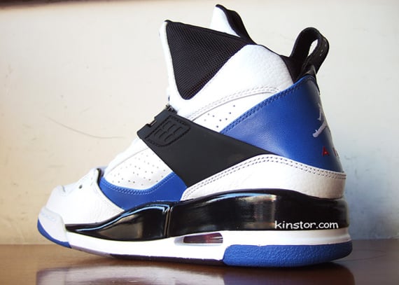 The Air Jordan Flight 45 High is the non-numbered Air Jordan shoe of the year. The latest Air Jordan Flight 45 High to surface comes in a white/black-blue colorway. This basketball shoe uses a white leather base with a little true blue inspiration, as blue is place strategically throughout the shoe along with red stitching to help us remember the True Blue Air Jordan IIIs. A shiny black midsole also takes influence from the Air Jordan III, yet has its own style with the black strap and black mesh ankle padding. These Flight 45s are available now overseas for a price of $105.