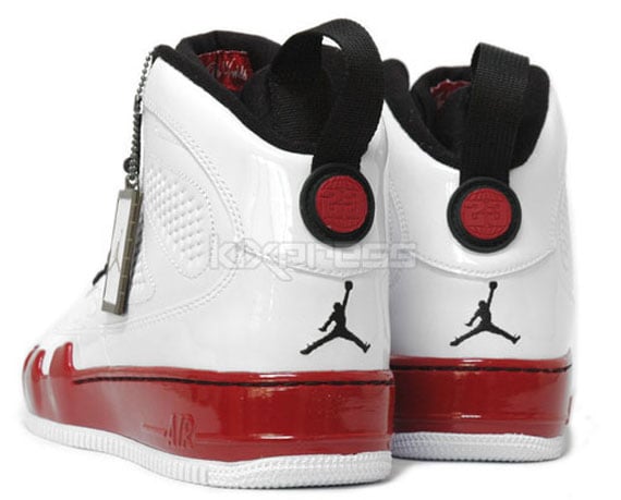The Air Jordan 9 is one of the most significant Air Jordan sneakers in history, because it released the same year that MJ retired. These special kicks are now mashed with the Nike Air Force 1 to become the next up in the Air Jordan Force line. This white, black, and red colorway works extremely well on this AJF 9 silhouette. One of the biggest reasons for that would have to be that the AJF 9 retains most of the features from the Air Jordan 9 model, so nothing looks out of place.