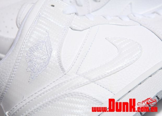 We previewed the Air Jordan I (1) Phat in the traditional black carbon fiber a day ago. Coming soon to select shelves to accompany this release is the Air Jordan 1 Phat in white carbon fiber. The uppers of this model comes in all white. The color blocking and material arrangement are the same as it’s black counterpart, other than the colorway. These are available soon at US retailers for $100.