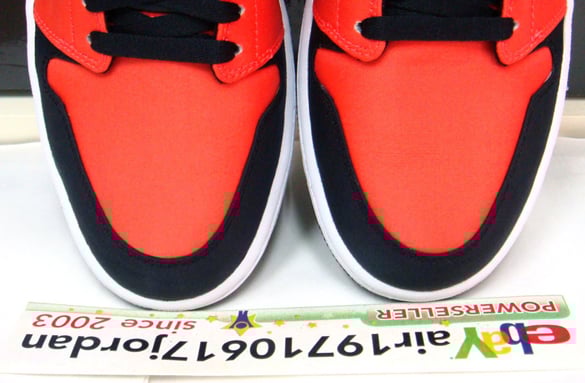 2009 is shaping up to be the year of the Air Jordan I (1) with countless catalog scans, future releases and now this model which has appeared weeks before its official release on February 14th. Formerly labeled as black, infrared and white, this Air Jordan 1 now includes max orange. However, the name change isn’t as drastic as it may seem, the sneakers now appear darker than first thought. But, its “Bred” like composition is sure to please as it vaguely appears like the original except for the nylon upper evident in the new pictures.