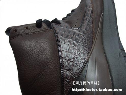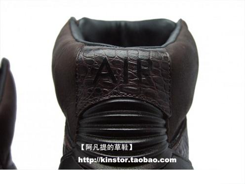 Last week we got our first look at the “Brown Croc” pair of Air Jordan IIs that sprung up seemingly out of nowhere. While the idea of using a crocodile skin patterning on an Air Jordan silhouette might sound intriguing at first, several were not particularly impressed with the first look at this Air Jordan II. However, now more pictures of this sneaker have surfaced- offering us a second, slightly more detailed look. With the brown color dominance and MJ’s known affinity for cigars, rumors are that that is where the inspiration for this pair of AJ IIs comes from. However, we can still only speculate as to the red wax stamp near the ankle. So take a closer look at the Air Jordan II “Brown Croc” after the jump, and let us know your reactions.