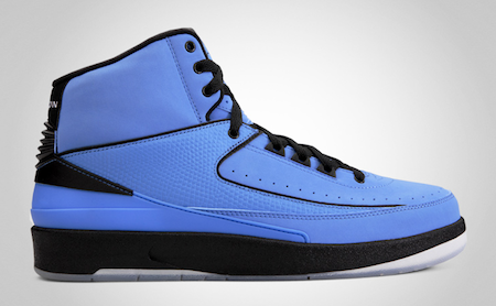 Jordan Brand is set to release the Air Jordan II QF in the University Blue/Black-White colorwayย on July 31, 2010. A portion of the upper is made of university blue nubuck with black accents and a black midsole. The signature side panels are university blue faux lizard skin and to top it all off, this particular model has Jordan Brand’s signature clear “icy” outsole. This Air Jordan II (2) – University Blue/Black-White will be a general release to the public and will be available for $135 on July 31, 2010.