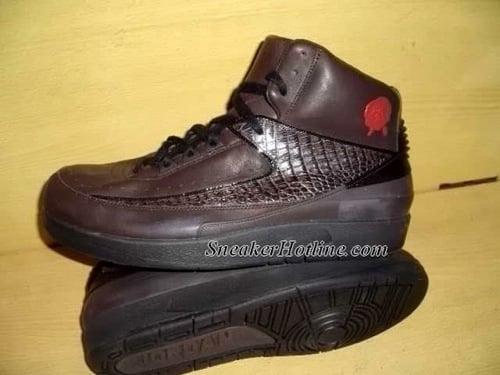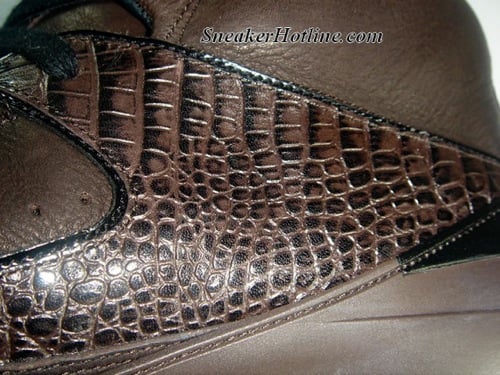 Last weekend, a bunch of team Jordan Brand members who play in the NBA caught many of us sneakerheads by surprise by putting on a display of different Air Jordan XIIs. Jordan Brand seems to have done it again. Pictured here is a pair of the Air Jordan II retro in a predominantly brown colorway. But at second glance you can also tell that parts of the heel and area between the mudguard and ankle include brown crocodile skin. Moreover, the sole is completely black. Lastly, along the outer ankle area of this pair of shoes there is what resembles a red wax stamp that seems to read “Bin 23.” Needless to say, very little is yet known with respect to this Air Jordan II or if it will even release. For now, enjoy pictures of this mystery Air Jordan II after the jump and know that we’ll bring you any news that comes up.