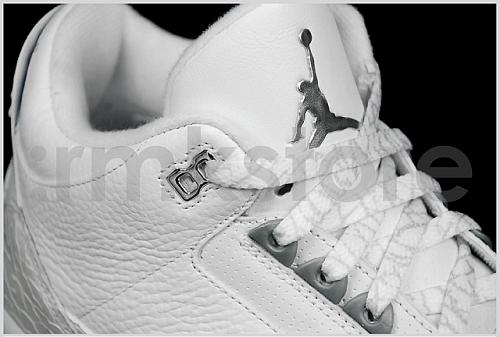 After showing you a couple of days ago the Air Jordan III designed in celebration of twenty five years of Air Jordans, some pairs have been made available for purchase. From the looks of it, the Silver Anniversary AJ III bears MUCH resemblance to the pair of white AJ IIIs that released in 2007. Either way, a VERY limited number of pairs have popped up at select Jordan Brand retailers including the one providing these clear pictures. So check out more pictures after the jump to decide (quickly) whether you want to pull the trigger on this opportunity.