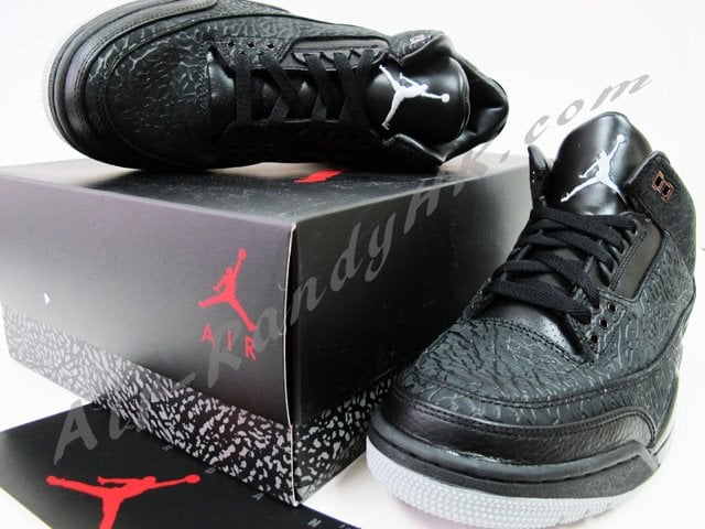 This “Black Flip” Jordan III is essentially an inverted version of the “Black Cat” 2007 release. ย Like the original Jordan III “Flip”, this blacked-out version sports an upper dominated by the iconic elephant print.