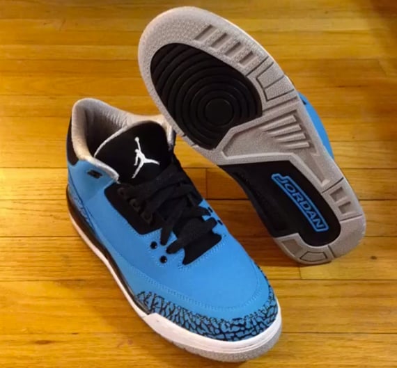 Taking into consideration Monday’s on-foot look of the Air Jordan III (3) GS “Powder Blue”, our latest look should reinforce the fact that these bad boys are shaping up to be a pretty solid release.
