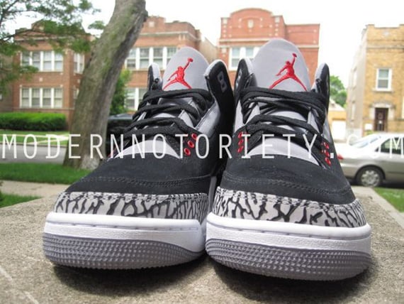 Just yesterday we previewed a teaser image of the Air Jordan III Retro Black/ Cement Sample which replaced the leather uppers with nubuck.