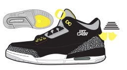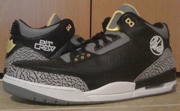 10 pairs of a special Air Jordan III “Pit Crew” will be raffled off to those in attendance. ย Based on the “Black Cement”, the “Pit Crew” III replaces the red accents with bright yellow and Oregon branding is found throughout in the form of the “O” on the tongue, duck feet on the heel, and “Pit Crew” embroidery on the lateral panel.